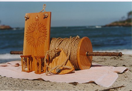 | Completed spool assembly, and roughed out sandglass frame. | ![]() |