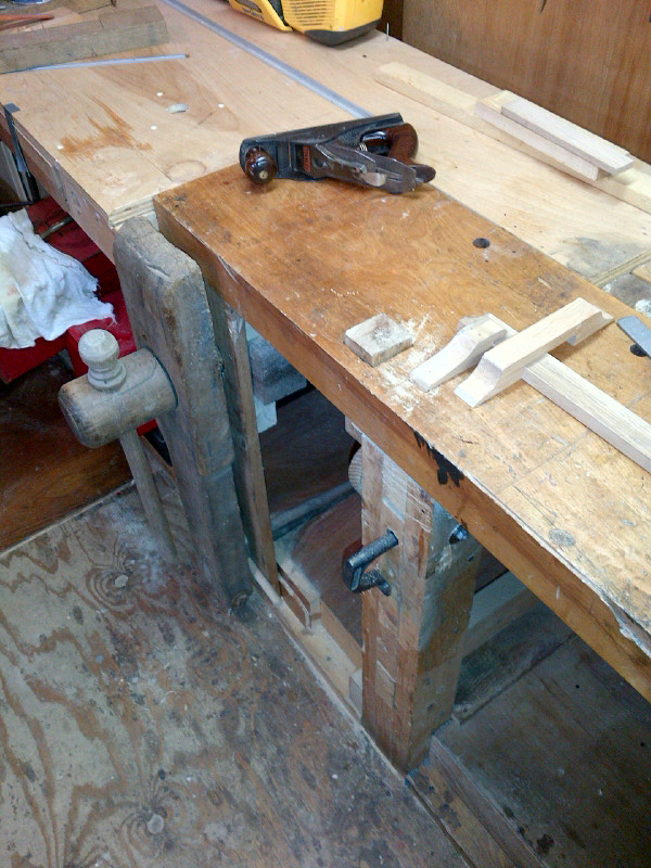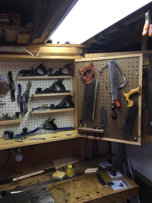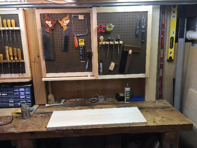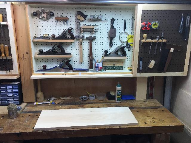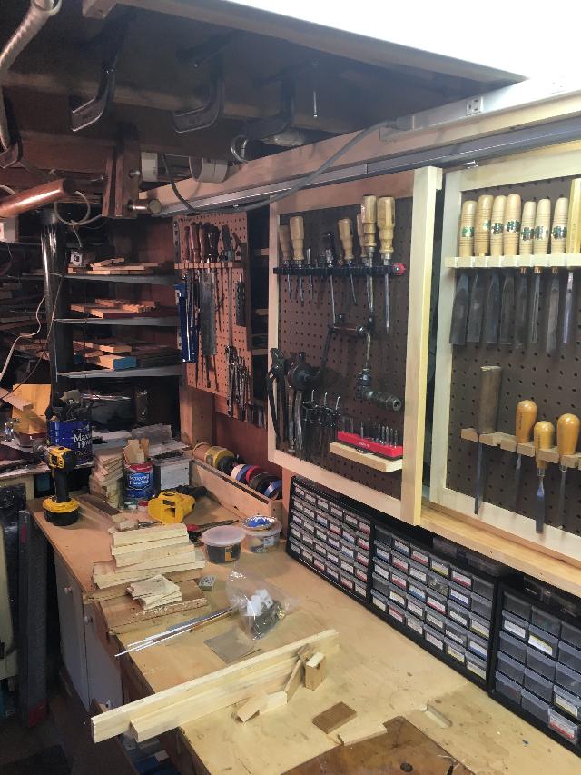 As I made these sliders I took careful note as to which tools I used, and in what order. Standing at the man bench and looking left the rarely used tools are the furthest away from me: