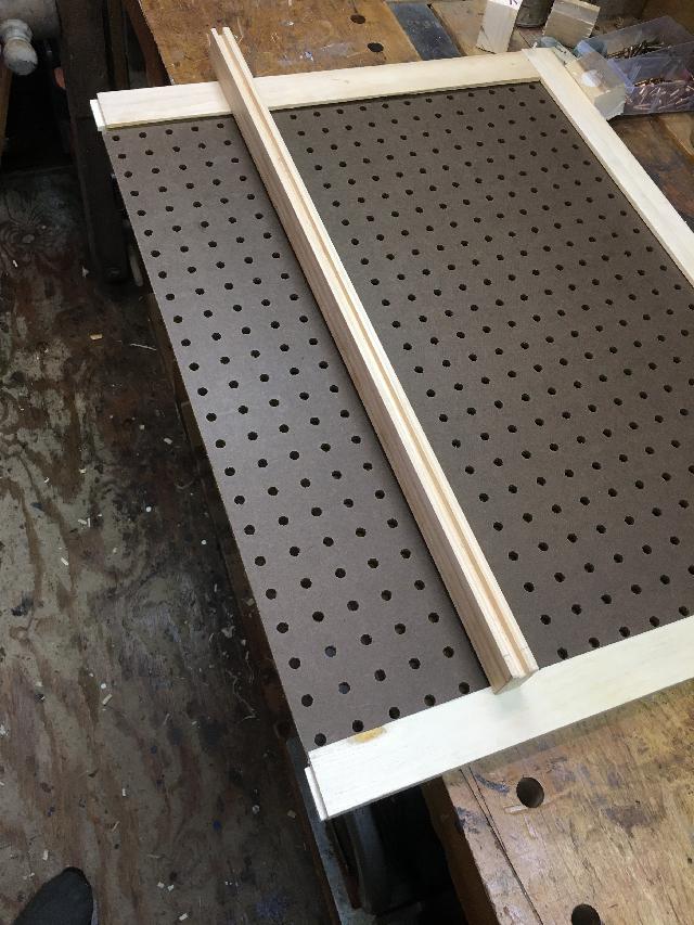 Each slider was 26H x 22W and made from pegboard framed in pine: