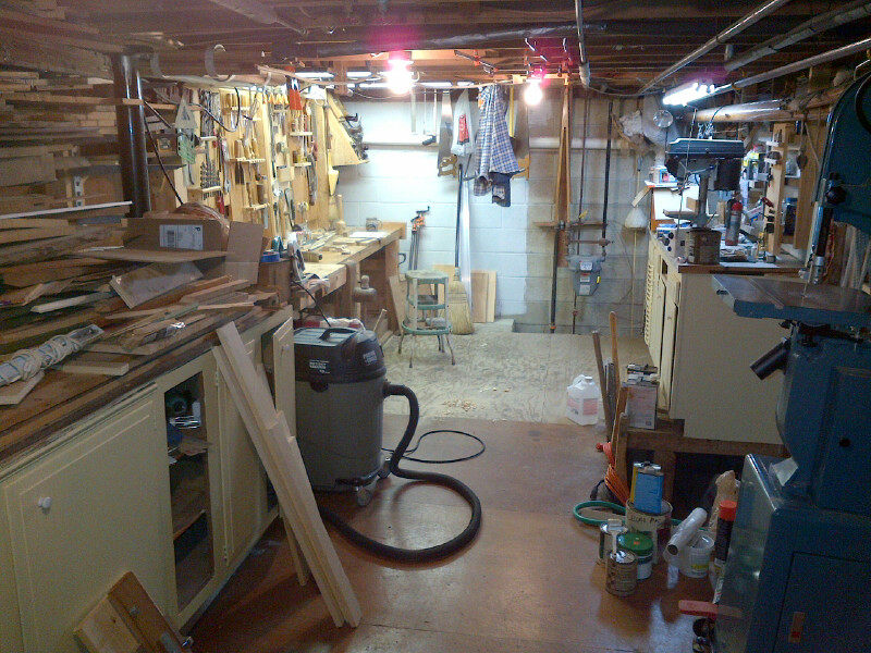 The cabinets you see are my old kitchen cabinets from a kitchen upgrade. That band saw you see on the right was sold.